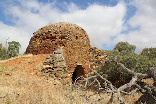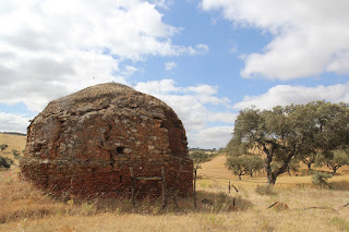 Francisco Lobo nasceu em 1920, nas terras do Lombador (Castro Verde). Dos 11 anos aos 30/32 trabalhou nos Fornos de Cal do seu pai, João Francisco Lobo. Carregar lenha, carregar pedra, enfornar, tirar a cal do forno... Os fornos, junto à ribeira de Cobres, nos Porteirinhos, Almodôvar, são um excelente exemplo de uma arquitectura (extinta) aproveitando a orografia e os recursos. Pedra assente em barro junto a zona de água e pedra "calcária". Fazia-se cal quase todo o ano, mas aproveitava-se sobretudo o tempo quente. Estevas, loendros, juncos, toda a vegetação servia para queimar, nas quase 100 carradas de lenha que eram necessárias para fazer as duas fornalhas dos dois fornos que a família levava. Dormia-se numa cabana de mato que, quando chovia, não cobria nada. Fugia-se então para uma espécie de gruta que havia na pedreira. Na foto, Francisco Lobo (97 anos) e o seu filho Arlindo na visita que realizámos hoje, 6 de junho, numa viagem que o levou a contar histórias de há 80/70 anos. estórias...