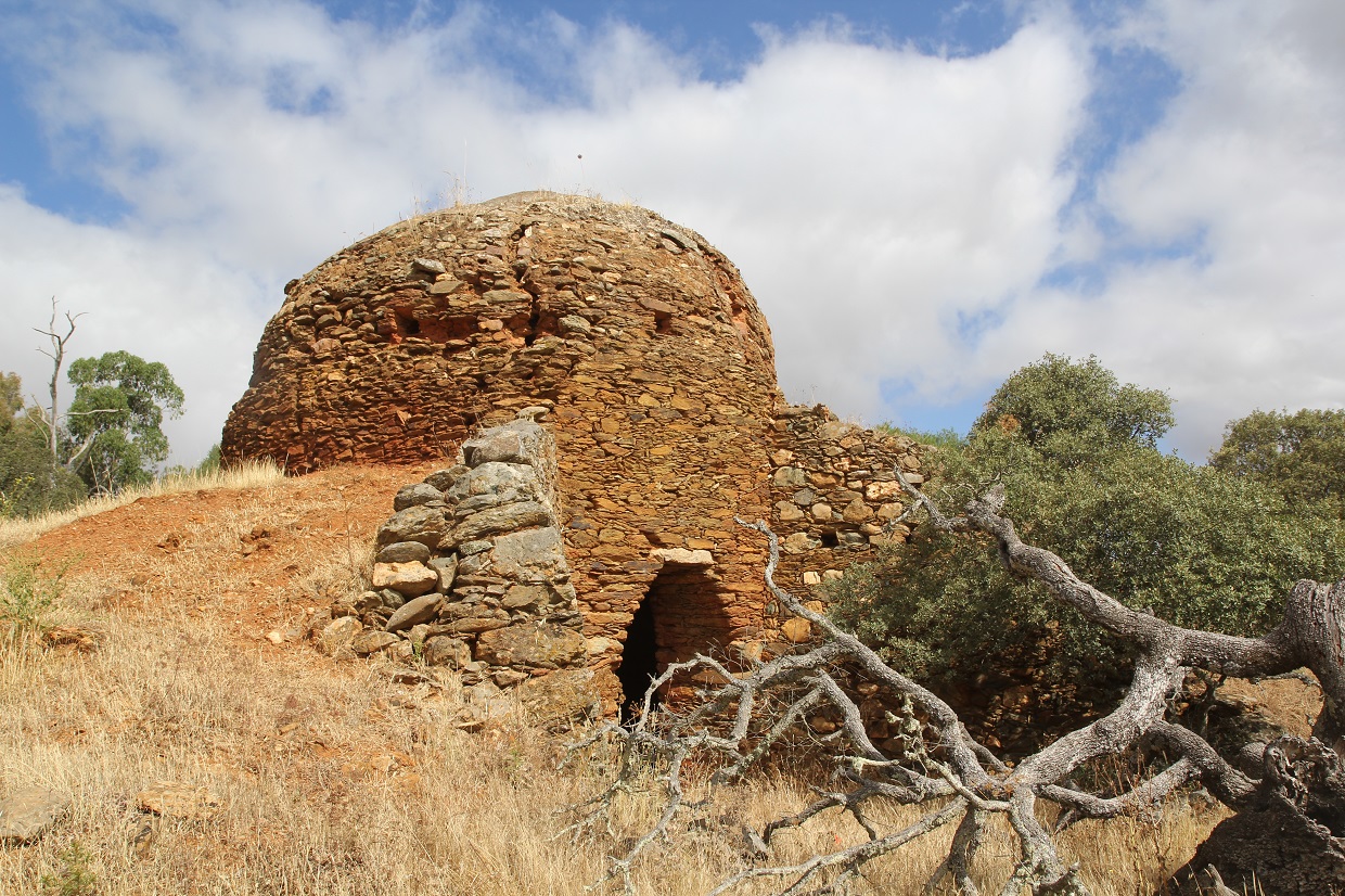 Um dos fornos de cal e a ribeira de Cobres ao fundo